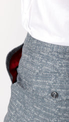 This style is mid-rise and cut with a straight leg silhouette that offers contemporary sophistication. Practical side pockets meet a ruffle belt detail at the waist for a refined finish, while welted flap pockets with button finish elevate the rear pocket feature with artisanal appeal.