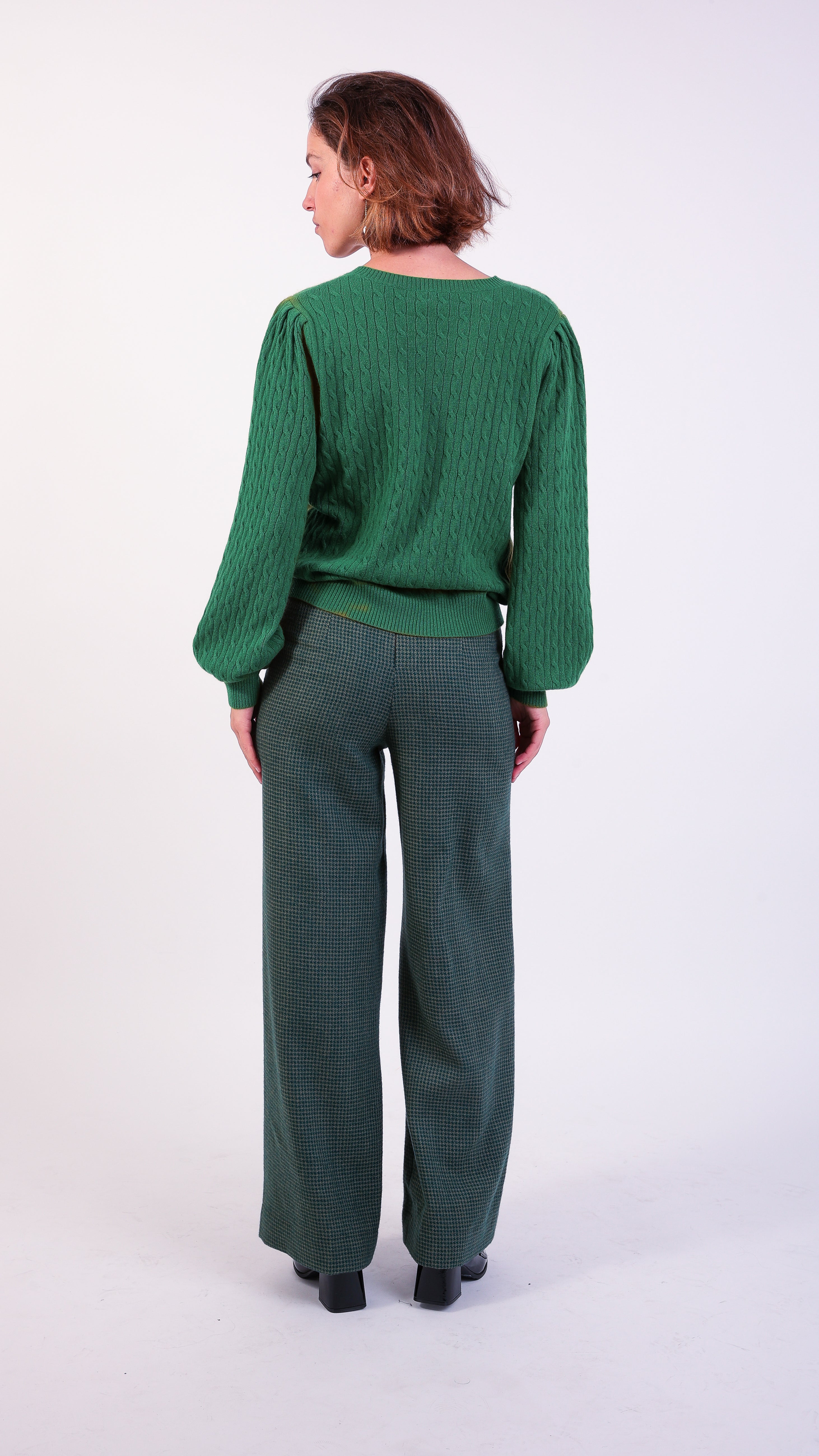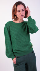 Petra Cable Knit Balloon Sleeve Jumper Green