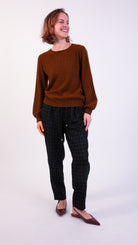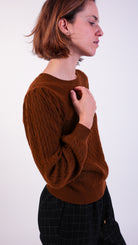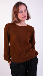 Petra Cable Knit Balloon Sleeve Jumper Brown