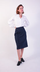 This herringbone weave shirt is designed for a loose comfort fit with a slightly longer back panel. A box pleat on the back yoke and peasant sleeves add extra detailing. Front buttons are invisible in a double placket. Dressed here with our ruffle trousers and boots, but would also be perfect with leather trousers and heels for an elevated look taking you from day to evening.