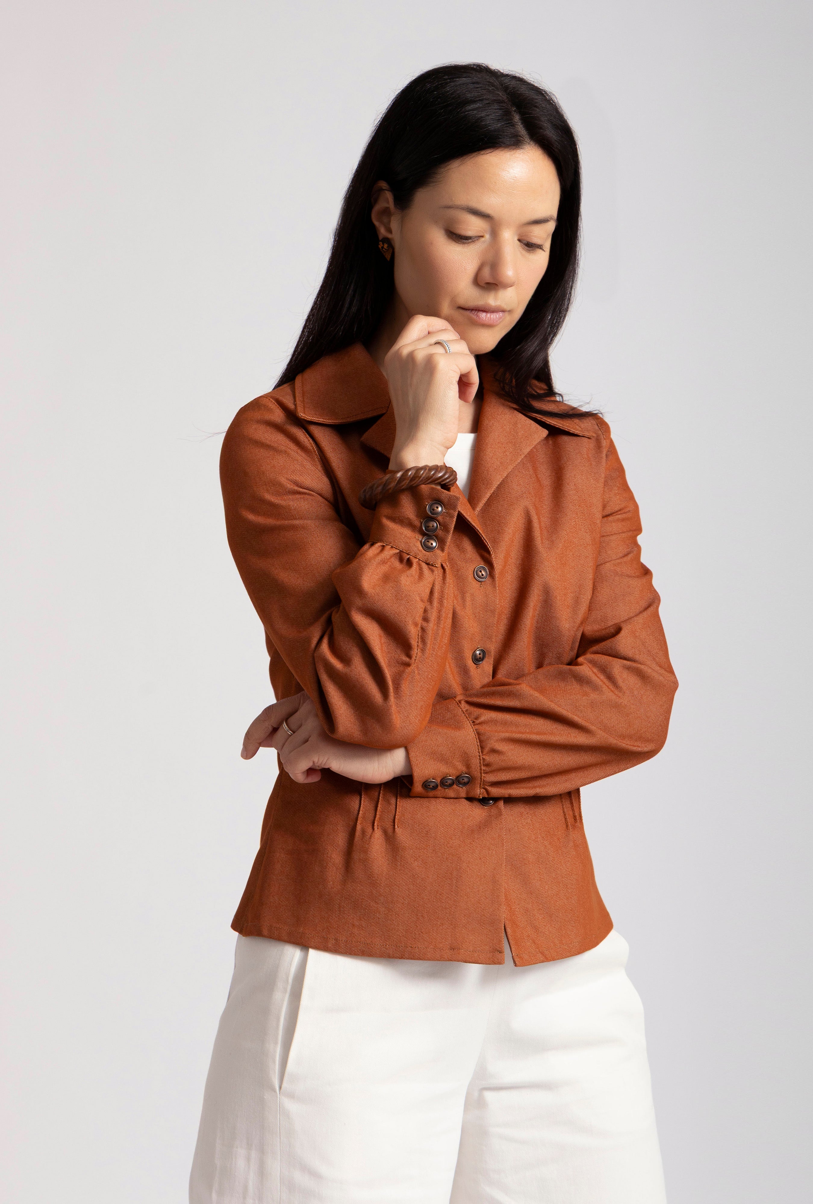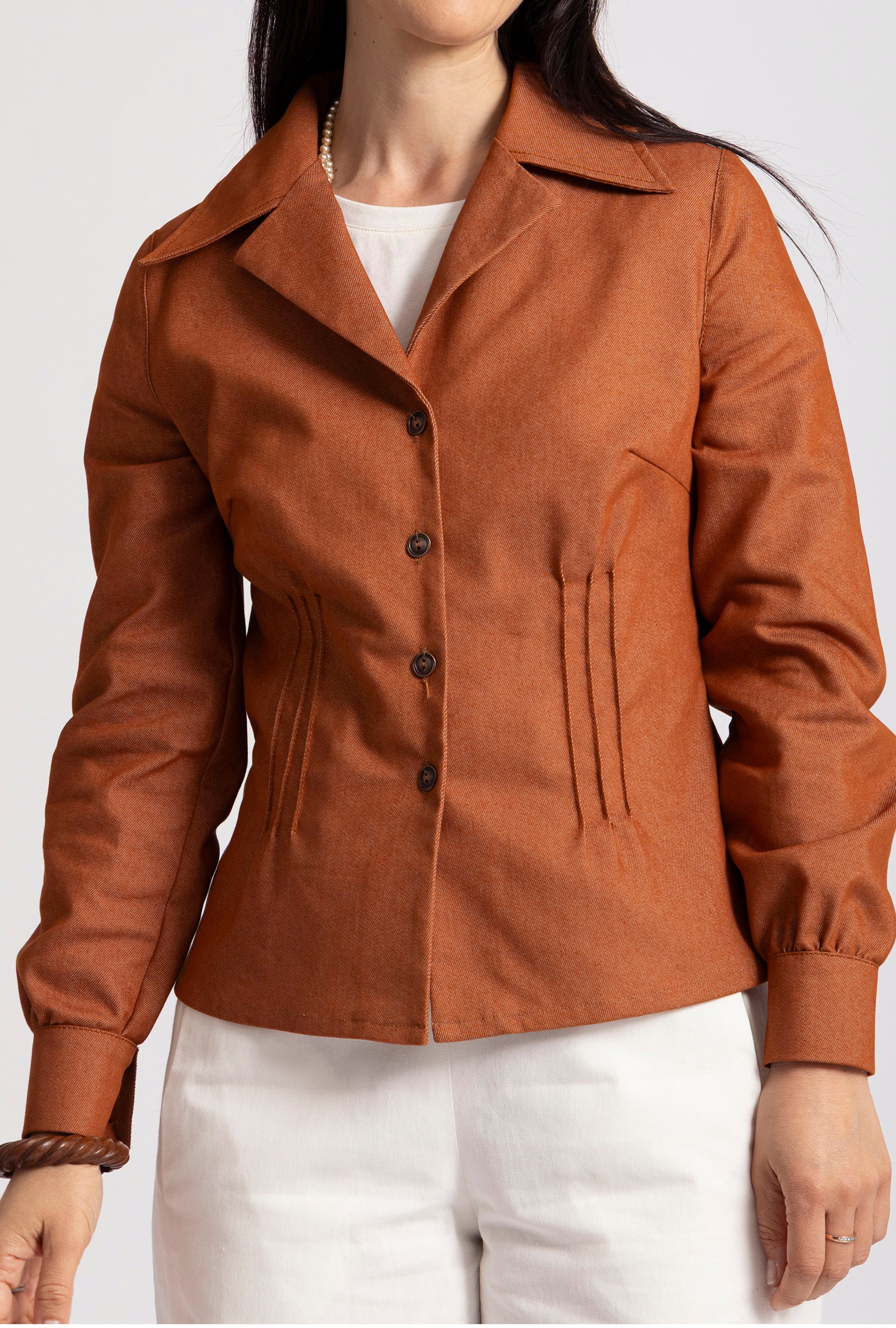 Olivia Denim Fitted Shirt Jacket Terracotta